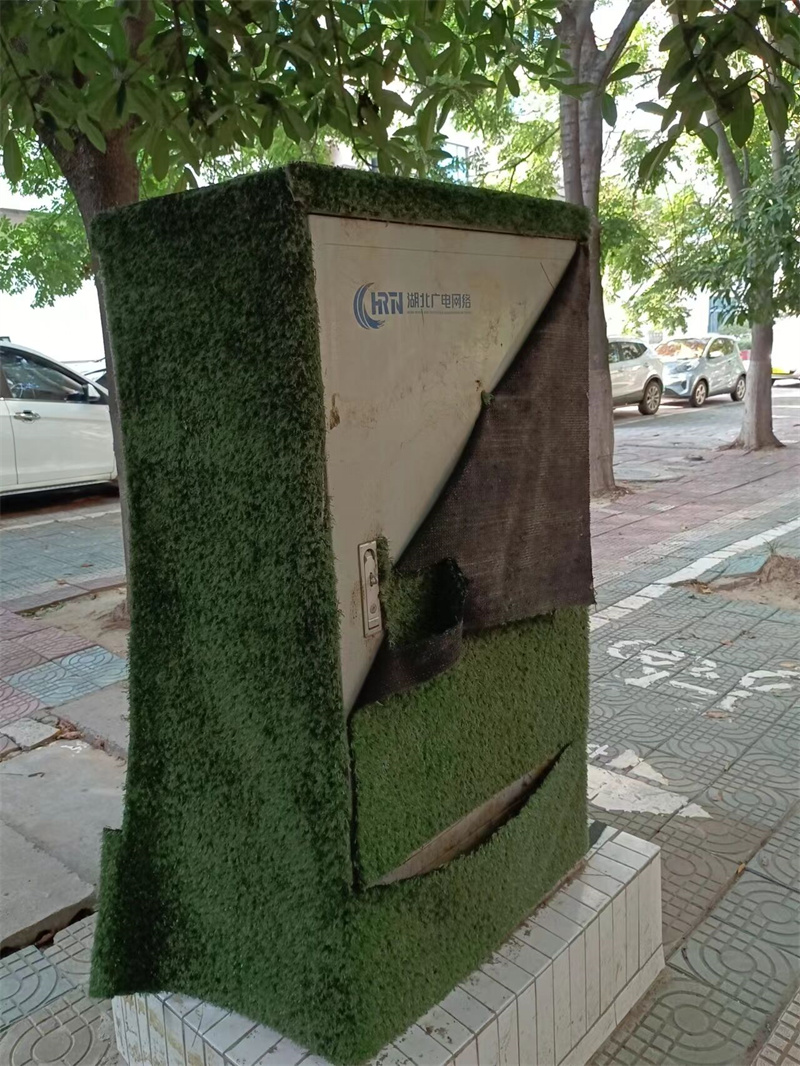上午,記者來到晨光路和宜城大道交匯口發(fā)現(xiàn),路邊的變電箱被涂上了“辦證刻章”等字樣,看上去十分刺眼;路口另一處湖北廣電網(wǎng)絡(luò)配電箱綠色保護膜被撕開。附近居民王女士告訴記者,這層綠色保護膜是先前清理小廣告時“穿”上的,但清理后卻又遭遇“脫衣”。