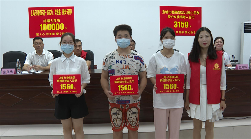 本網(wǎng)訊記者謝子恒報道:8月16日,市紅十字會、市教育局在宋玉中學(xué)聯(lián)合舉辦“以愛助學(xué)”助學(xué)金發(fā)放暨“圓夢大學(xué)”結(jié)對幫扶儀式。上海弘泰俱樂部張宏歷、李煥鑫、魏夢云團(tuán)隊、福萊堡幼兒園義賣捐贈等共計103680元,資助全市112名困難家庭學(xué)生。