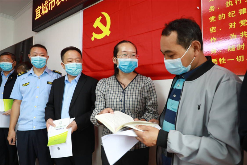 活動(dòng)現(xiàn)場(chǎng),襄陽(yáng)市農(nóng)業(yè)農(nóng)村局向示范戶(hù)代表贈(zèng)送法律書(shū)籍、宣講法律知識(shí)。