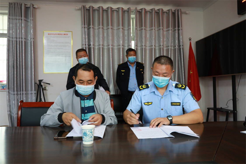 活動(dòng)現(xiàn)場(chǎng),市農(nóng)業(yè)綜合執(zhí)法大隊(duì)執(zhí)法人員和全市農(nóng)村學(xué)法示范戶(hù)代表簽訂"結(jié)對(duì)子"協(xié)議書(shū)5份,發(fā)放普法宣傳資料20多份。