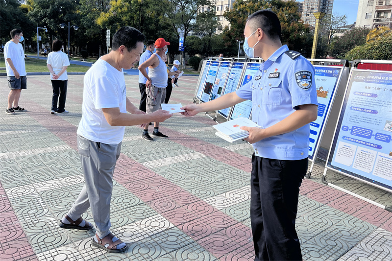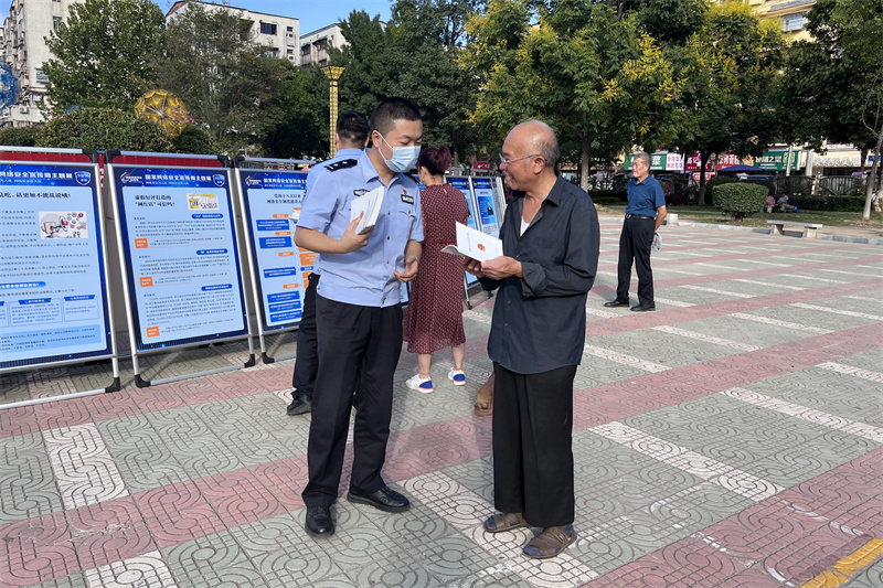 本網(wǎng)訊通訊員梁開至 項依然報道:9月5日下午,網(wǎng)絡(luò)安全保衛(wèi)大隊民警們齊裝上陣,在紫蓋山廣場開展網(wǎng)絡(luò)安全線下集中宣傳活動。