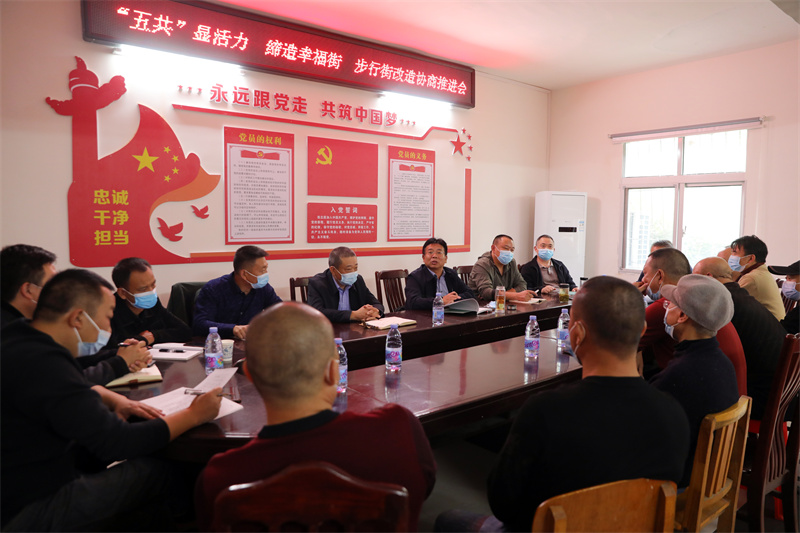在協(xié)商推進會上,住建局、施工企業(yè)把步行街改造意圖、方案、施工情況介紹后,業(yè)主代表紛紛表示支持步行街改造,也提出改造意見建議。