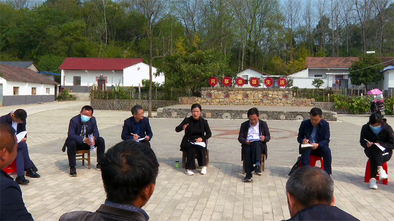 在劉猴鎮(zhèn)胡坪村二組,肖平與鎮(zhèn)村干部、村民圍坐一圈,和他們面對(duì)面交流,了解訴求,聽取他們對(duì)"共同締造"工作的意見和建議,現(xiàn)場(chǎng)研究解決方案。