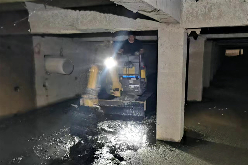 暗溝從宜城大道至文昌路,全長2.3公里。暗溝清淤是在封閉的地下施工,作業(yè)面狹窄,施工難度大,分四段進(jìn)行。