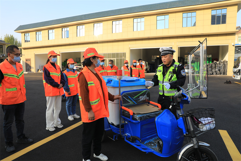 活動中,民警結(jié)合轄區(qū)道路交通實(shí)際情況,詳細(xì)講解環(huán)衛(wèi)工人在道路上進(jìn)行作業(yè)時存在的道路交通安全隱患。通過深入淺出的講解和警示,提醒大家在進(jìn)行道路清掃時,一定要統(tǒng)一穿著反光背心,清潔車輛上粘貼發(fā)光貼,務(wù)必與車輛保持安全距離。環(huán)衛(wèi)車輛作業(yè)時,注意臨時?康攸c(diǎn)的選擇,確保清運(yùn)作業(yè)的同時規(guī)避道路交通安全隱患,避免交通事故風(fēng)險。