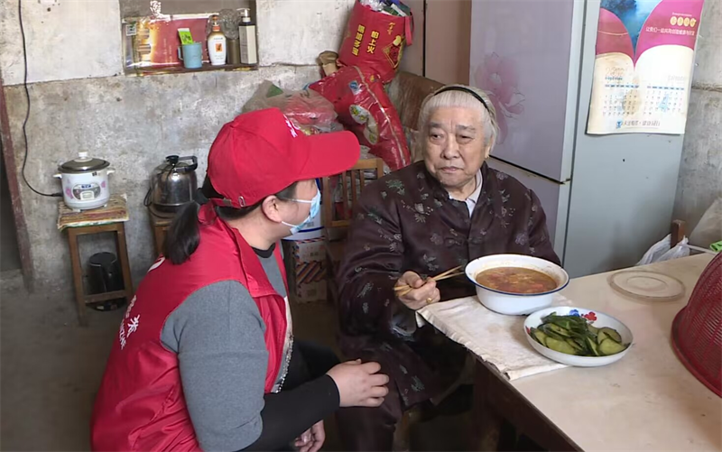"大媽,飯做好了,熱乎的,您趕緊吃。"知道老人家的口味,少鹽少糖是他們?cè)偃谧约旱,每天都?huì)按時(shí)給老人送上熱氣騰騰的飯菜,并叮囑老人有需求就給自己打電話。他們還仔細(xì)檢查了老人家里的電線、煤氣等設(shè)備,幫他把家里打掃干凈,讓老人生活得更加舒心。