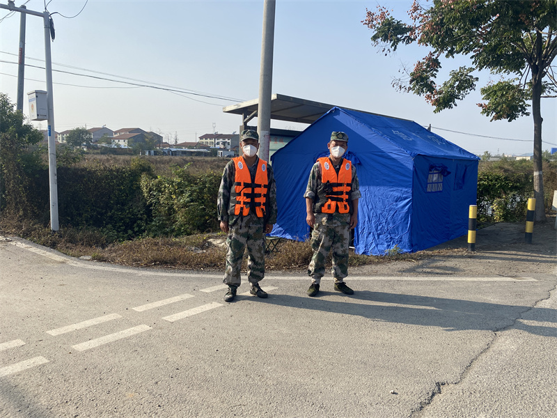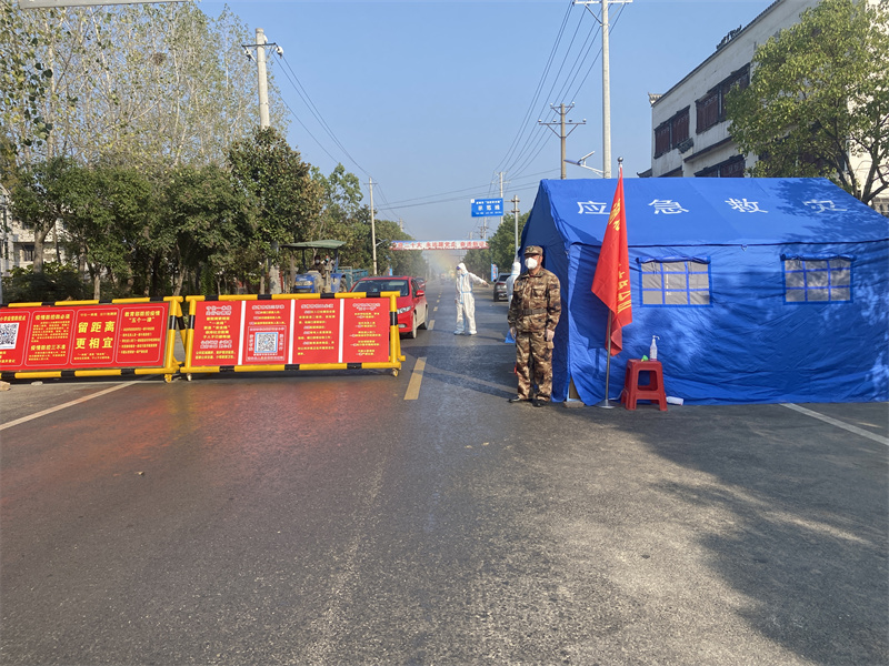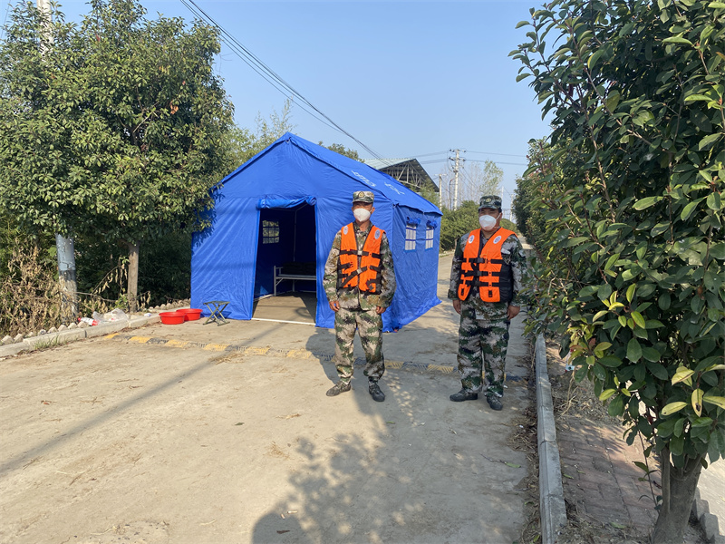 在鄭集鎮(zhèn)余營村疫情防控執(zhí)勤點,來自板橋店鎮(zhèn)的民兵朱美華和他的戰(zhàn)友已經(jīng)連續(xù)執(zhí)勤三天三夜了,吃住都在執(zhí)勤點,確保防疫工作順利開展。