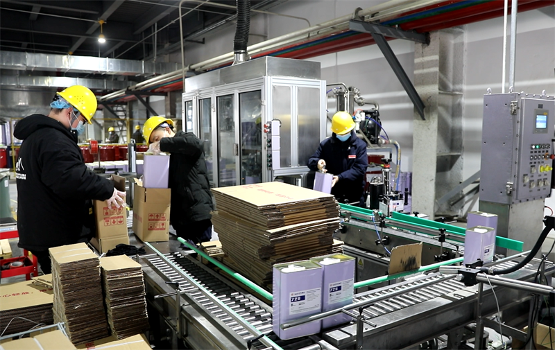 11月20日,記者在湖北回天新材料(宜城)有限公司包裝膠自動(dòng)灌裝生產(chǎn)車間看到,機(jī)器開(kāi)足馬力,工人加班加點(diǎn),灌裝、打蓋、纏膜、轉(zhuǎn)運(yùn)……各道工序緊張有序地進(jìn)行生產(chǎn)。