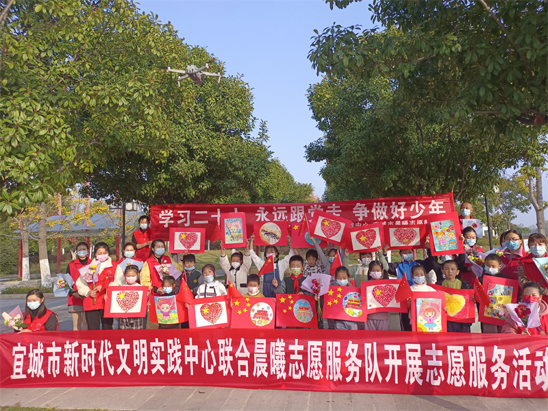 小志愿者曾浩宇表示:"很開心我的作品可以在新時代文明實(shí)踐活動中展出,此次活動,豐富了我和小伙伴們的課余生活,我們要做一個品格優(yōu)良、有禮有德、樂于助人、遵紀(jì)守法的好學(xué)生,為祖國的強(qiáng)大貢獻(xiàn)力量。"