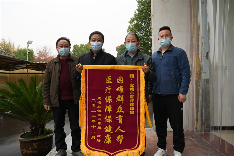張德洪的母親劉散香是二級(jí)重度殘疾,按照政策規(guī)定,醫(yī)保參保繳費(fèi)屬于政府全額資助。但由于個(gè)人疏忽,劉散香2022年殘疾證沒有及時(shí)年審,影響了本年度的醫(yī)保參保繳費(fèi)資助,導(dǎo)致劉散香沒有繳納2022年度醫(yī)保參保費(fèi)用。10月22日,劉散香突發(fā)中風(fēng)住院,發(fā)現(xiàn)不能正常享受醫(yī)保報(bào)銷待遇,7000多的醫(yī)療費(fèi)需要全額自付。張德洪把情況反映給村干部,村干部又反映到了市醫(yī)保局。醫(yī)保局工作人員經(jīng)系統(tǒng)核查,并向市殘聯(lián)核實(shí)其身份后,及時(shí)做了新增補(bǔ)交。"7000多醫(yī)療費(fèi)用,報(bào)銷了5000多,我們只付了2000多。"醫(yī)保報(bào)銷成功后,張德洪特別高興,執(zhí)意要送上這面錦旗。