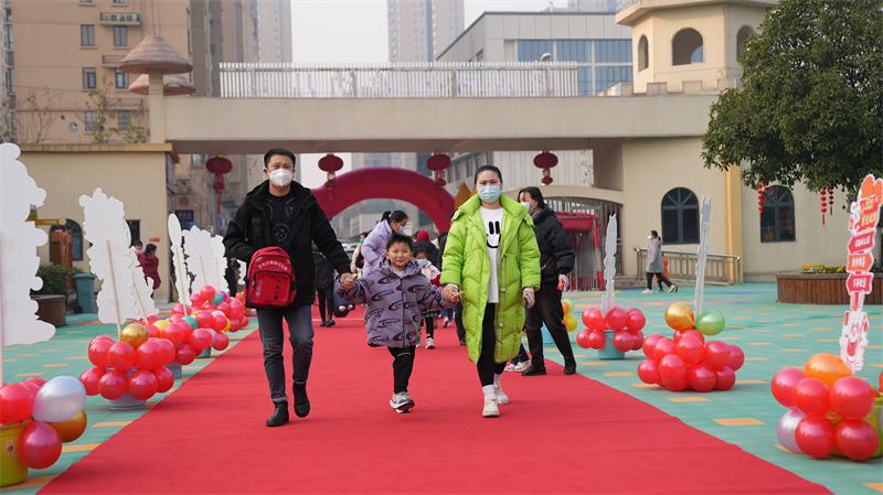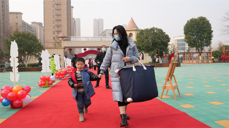 本網(wǎng)訊記者鐘軍 劉毅 通訊員王毅報道:2月6日是春季開學(xué)第一天,宜城市實驗幼兒園的孩子們身著盛裝,在家長的陪同下重返校園。