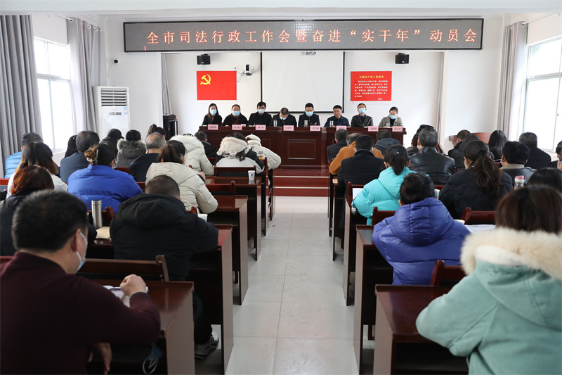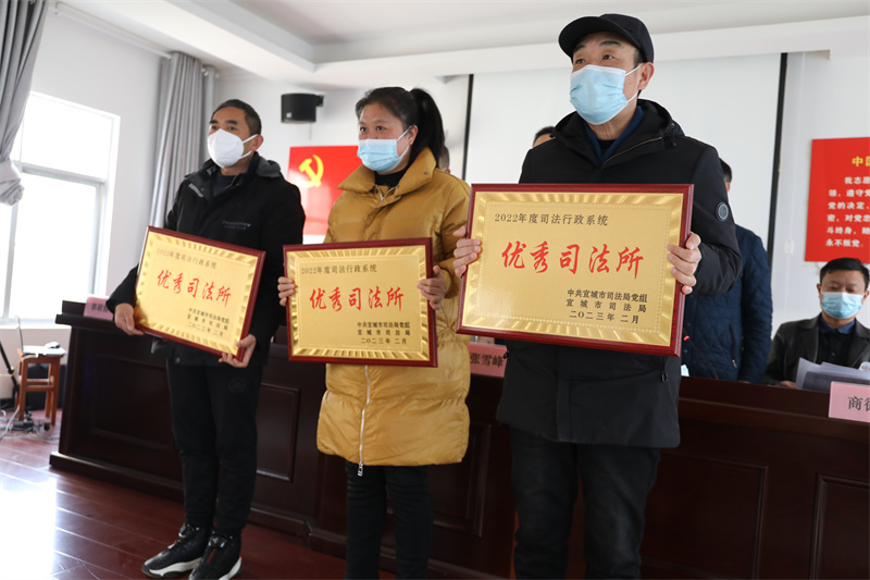 副市長、市公安局局長張雪峰充分肯定了2022年全市司法行政工作在推動平安宜城、法治宜城建設(shè),服務(wù)經(jīng)濟(jì)社會高質(zhì)量發(fā)展方面作出的積極貢獻(xiàn)。張雪峰要求,新的一年,要以貫徹落實黨的二十大精神為主線,對標(biāo)對表高質(zhì)量、高水平,推進(jìn)司法行政工作創(chuàng)新發(fā)展。要認(rèn)清形勢、科學(xué)謀劃,把握大勢、增強(qiáng)使命感,立足實際、增強(qiáng)責(zé)任感,高點定位、增強(qiáng)榮譽(yù)感,工作確立新目標(biāo);要服務(wù)大局、服務(wù)群眾,提升社會法治化水平、高質(zhì)量推進(jìn)法治建設(shè),抓好安保維穩(wěn)工作、積極推動平安宜城建設(shè),優(yōu)化便民舉措、最大限度滿足人民群眾期待,營造法治化營商環(huán)境、服務(wù)經(jīng)濟(jì)社會發(fā)展,工作實現(xiàn)新突破;要轉(zhuǎn)變作風(fēng)、強(qiáng)化工作落實,加強(qiáng)督辦、做實績效考核,嚴(yán)明紀(jì)律、從嚴(yán)從緊管理隊伍,樹立隊伍新形象;進(jìn)一步振奮精神、務(wù)實奮進(jìn)、忠誠履職,開創(chuàng)司法行政事業(yè)新局面,譜寫法治宜城建設(shè)事業(yè)新篇章。