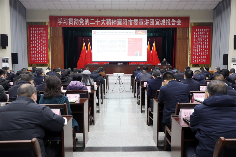 本網(wǎng)訊記者李勤 周波報(bào)道:2月9日,學(xué)習(xí)貫徹黨的二十大精神襄陽市委宣講團(tuán)宜城報(bào)告會(huì)在財(cái)培中心舉行。