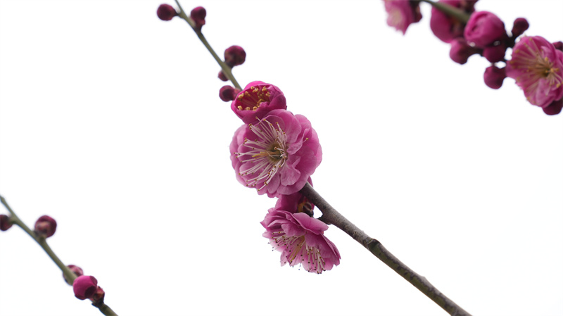 綻放的梅花遠看像朵朵云霞,滿載著春的氣息,陣陣淡淡的梅花香味隨風襲來,令早春踏青的市民游客流連忘返。