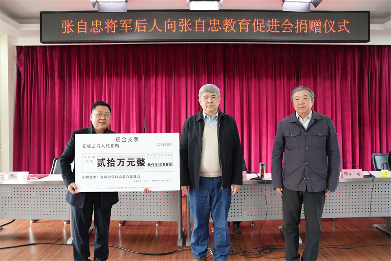 本網(wǎng)訊記者向杰廷 鄔玲玲通訊員蔡芳報道:3月3日,宜城市政協(xié)舉行張自忠將軍后人向張自忠教育促進會捐贈儀式 ,張自忠將軍的外孫車晴、車臨遵從母親張廉云女士的遺愿 ,向張自忠教育促進會捐贈人民幣20萬元,作為宜城教育事業(yè)的獎勵費用。市政協(xié)主席李源、副主席楊健健參加活動。