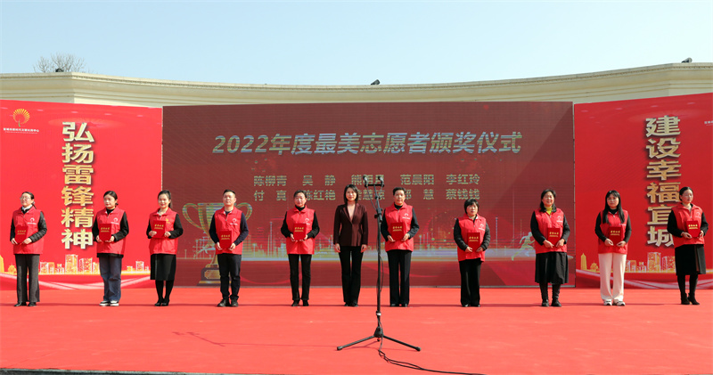 武義泉、蒙瑾為宜城市2022年度最美志愿者、最美新時(shí)代文明實(shí)踐站、最佳志愿服務(wù)組織頒獎(jiǎng),為全市九支專業(yè)志愿服務(wù)隊(duì)授旗。