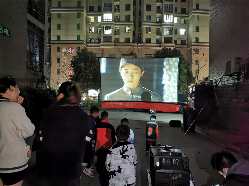 當(dāng)晚,宜城市電影公司放映隊(duì)分別走進(jìn)燕京花苑廣場、紫蓋山廣場、紫陽觀社區(qū)、九龍社區(qū)、前進(jìn)路社區(qū)、窯灣社區(qū)等地,把《烽火少年》《刀鋒行動(dòng)》等經(jīng)典的電影送到市民的身邊。當(dāng)夜幕緩緩降臨,電影正式開始,不少群眾聞聲而來,駐足觀看,享受著愜意的露天觀影時(shí)光。