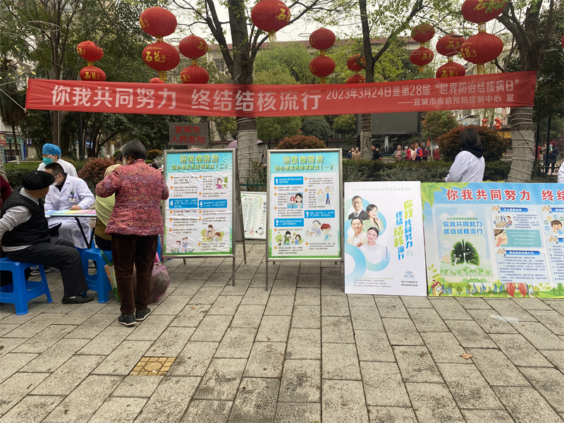 活動現(xiàn)場,工作人員懸掛橫幅、擺放宣傳海報和宣傳展板、發(fā)放宣傳資料、解答群眾咨詢,為過往群眾免費開展測血壓等義診服務,講解國家防治結核病免費政策,宣傳結核病的危害性和防治知識。