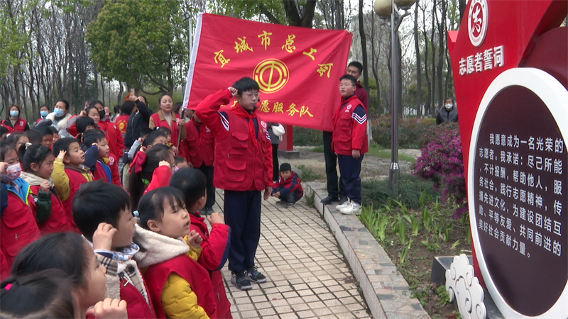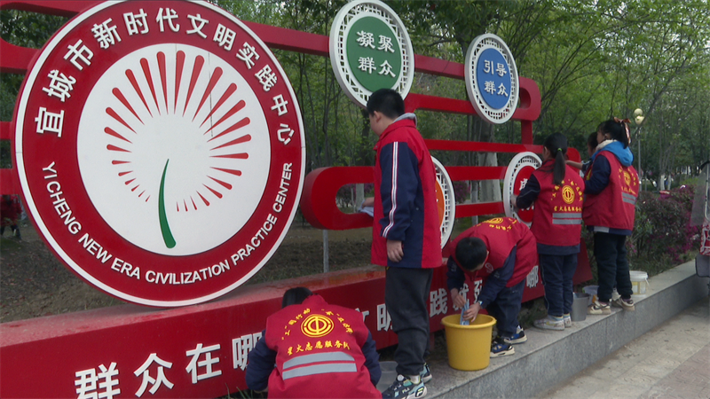在新時(shí)代文明實(shí)踐主題公園,同學(xué)們整齊列隊(duì),舉起右手,大聲宣讀志愿者誓詞,鏗鏘有力的聲音在公園上空回蕩。最后,大家拿出隨身攜帶的勞動(dòng)工具開展義務(wù)勞動(dòng),有的撿拾垃圾,有的擦洗公共設(shè)施,現(xiàn)場(chǎng)一片火熱的勞動(dòng)景象。
