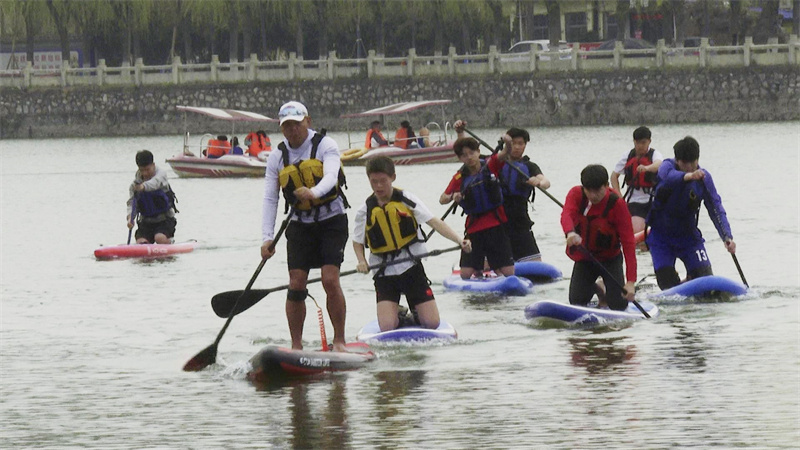 "今天上午對(duì)學(xué)員進(jìn)行槳板劃行技術(shù)、繞標(biāo)、落水自救等項(xiàng)目培訓(xùn),主要是讓他們掌握專業(yè)槳板劃行技能,能夠獲得參加今年4月份全國(guó)槳板青少年錦標(biāo)賽資格,也為他們以后參加體育特長(zhǎng)生招錄奠定基礎(chǔ)。"薛明魁說(shuō)道。