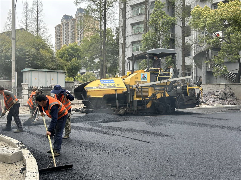 步行街北段進入路面瀝青攤鋪階段