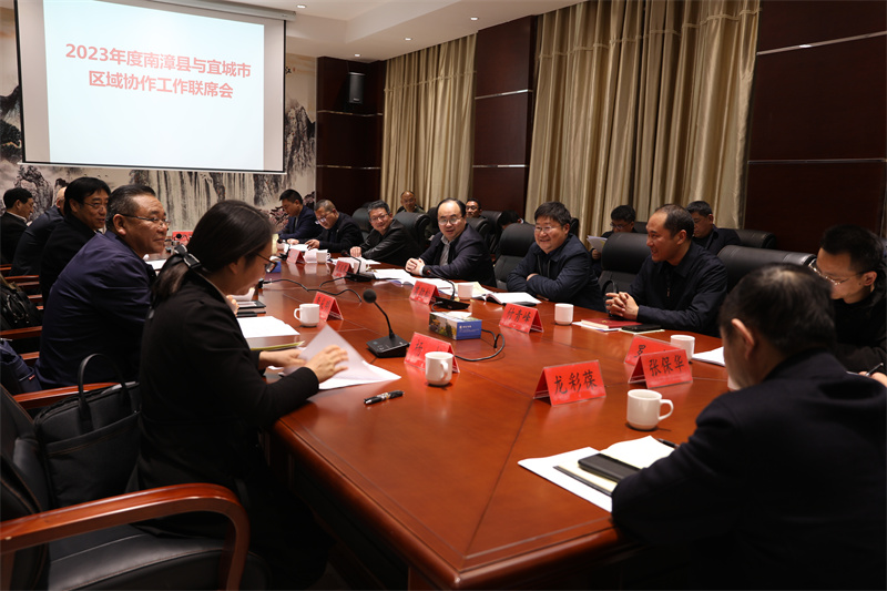 聯(lián)席會上,宜城市副市長周斌與南漳縣副縣長楊松簽訂了2023年度區(qū)域協(xié)作協(xié)議。據(jù)悉,2023年,宜城將履行好幫扶責(zé)任,聚集鞏固拓展脫貧攻堅成果、全面推進(jìn)鄉(xiāng)村振興目標(biāo)任務(wù),細(xì)化量化幫扶措施,向南漳縣提供財政援助資金500萬元,選派2名干部、2名專業(yè)技術(shù)人員掛職,轉(zhuǎn)移南漳縣脫貧人口到宜城就業(yè),幫助脫貧人口100人實現(xiàn)就地就近就業(yè);廣泛動員社會力量參與南漳縣鄉(xiāng)村振興,引導(dǎo)企業(yè)到南漳縣開展產(chǎn)業(yè)合作;安排不少于5個鎮(zhèn)(街道)與南漳縣的5個村(社區(qū))開展結(jié)對幫扶。