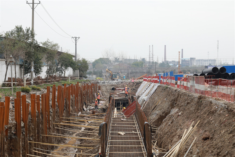 本網訊記者李勤 周波 通訊員姜偉報道:3月28日,在襄陽(宜城)精細化工產業(yè)園凌波中路施工現場,數十名工人正在開挖建設雨水箱涵,現場一派繁忙景象。