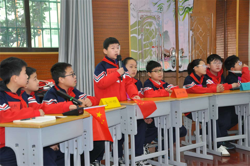 3月以來,南街小學持續(xù)在班級進行初選,最終選定來自五年級6個班級的18位學生參加此次大賽。大賽共分為必答題、搶答題、畫中有詩、古詩猜猜猜和飛花令等五大題型,6支參賽隊伍依據(jù)比賽規(guī)則進行作答。必答題沉穩(wěn)應對、風險題相互合作、搶答題反應迅速,飛花令你來我往,比賽現(xiàn)場高手云集,異常激烈。經(jīng)過四關的激烈角逐,誕生了本次大賽的冠亞季軍和三位“詩詞小達人”。