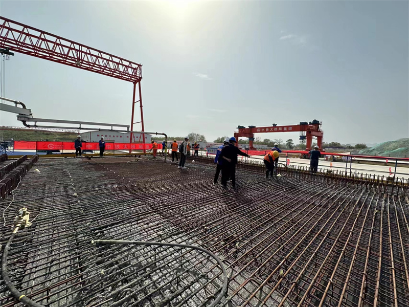 本網(wǎng)訊通訊員熊英豪 肖詩雨 陳浩龍報(bào)道:4月8日上午,襄荊高鐵XJZQ-1標(biāo)線首孔箱梁在經(jīng)過精心組織及合理布局下,順利澆筑,這也是新建襄陽至荊門高速鐵路澆筑的首孔箱梁。