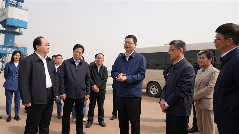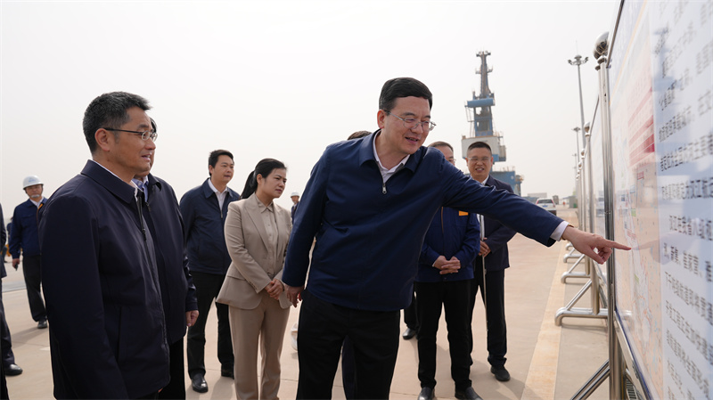 在小河港區(qū)綜合碼頭,盛閱春詳細(xì)了解了漢江航道、襄陽港規(guī)劃布局、小河港區(qū)規(guī)劃建設(shè)、港產(chǎn)城融合發(fā)展等情況。