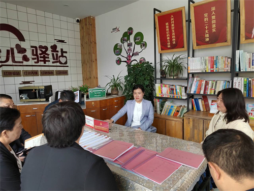 肖平首先來到宋玉社區(qū)彩誠(chéng)工業(yè)園紅色驛站,通過實(shí)地參觀、翻閱資料、面對(duì)面座談等方式,詳細(xì)了解陣地建設(shè)和運(yùn)行情況。彩誠(chéng)工業(yè)園區(qū)內(nèi)從事建材、家居、農(nóng)機(jī)等多個(gè)行業(yè)人員3000多人,為了讓他們真切感受到黨組織的關(guān)懷和溫暖,切實(shí)提升獲得感和幸福感,宋玉社區(qū)充分發(fā)揮黨建引領(lǐng)作用,在園區(qū)內(nèi)設(shè)立紅色驛站,將其打造成為資源集聚、功能集成、服務(wù)集約的“黨建圈、經(jīng)濟(jì)圈、朋友圈、服務(wù)圈、幸福圈”。