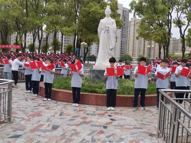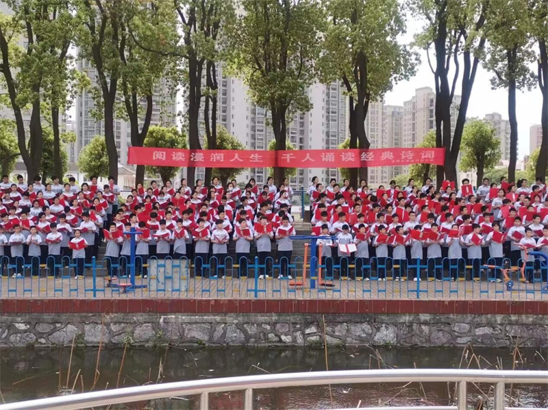 4月14日,宋玉中學(xué)樟樹林的臺(tái)階上,陽春閣白雪亭前,一場由近千名師生組成的誦讀隊(duì)伍,在“閱讀浸潤人生,千人誦讀經(jīng)典詩詞”橫幅下,讓人們見識(shí)了千人誦讀宏大壯觀的場面,感受到誦讀的魅力。這場千人誦讀經(jīng)典的活動(dòng)也拉開了宋玉中學(xué)“2023年宋玉讀書節(jié)”活動(dòng)的帷幕。