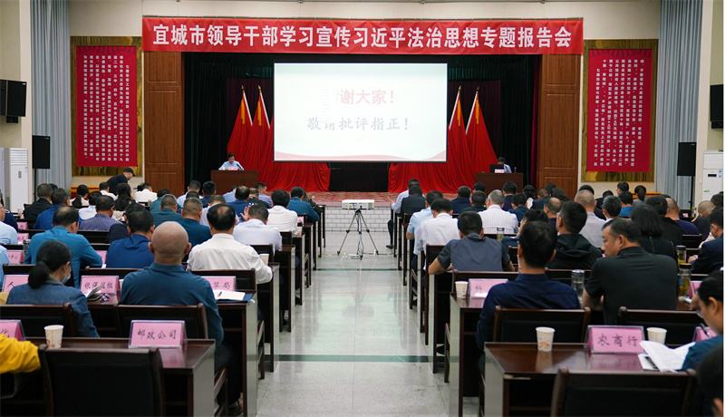 本網(wǎng)訊記者劉毅 周波報(bào)道:4月18日,宜城市領(lǐng)導(dǎo)干部學(xué)習(xí)宣傳習(xí)近平法治思想專題報(bào)告會(huì)在市財(cái)培中心舉行。市委副書記、市長肖平主持報(bào)告會(huì)。