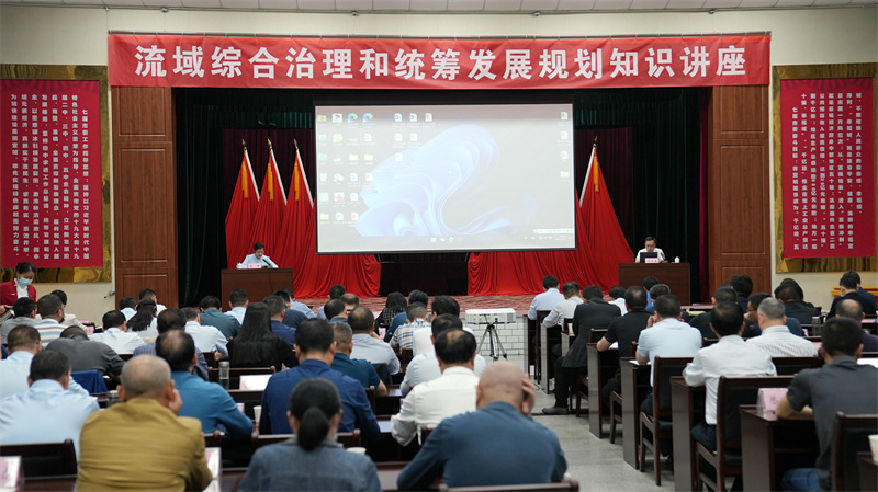 宜城市委副書記、市長肖平主持講座并指出,開展這次主題講座就是為了深入貫徹習近平總書記關于湖北省流域綜合治理和統(tǒng)籌發(fā)展規(guī)劃綱要的重要指示批示精神,全面落實省委關于流域綜合治理的決策部署,切實提高宜城各級領導干部關于流域綜合治理和統(tǒng)籌發(fā)展的系統(tǒng)認識和理論素養(yǎng),推動宜城流域綜合治理和統(tǒng)籌發(fā)展規(guī)劃的編制和落實。各地各部門要以此次專題講座為契機,自覺加強對省、襄陽市流域綜合治理和統(tǒng)籌發(fā)展規(guī)劃的領會和思考,真正做到學懂弄通,推動省委決策部署在宜城落地、成勢、見效,為全省流域綜合治理作出宜城應有的貢獻!