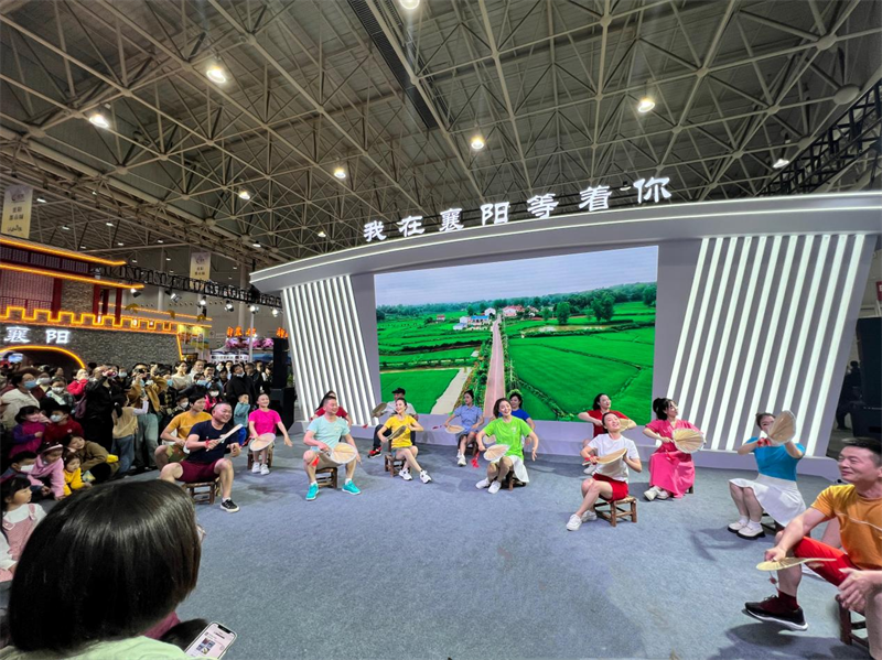 一人飾“兩角”、惟妙惟肖的“老背少”,花紅柳綠唱家鄉(xiāng)的花鼓戲、熱情洋溢“宜城歡迎您”的蘭花筒……在專場(chǎng)推介會(huì)上,宜城市文化和旅游局精心推薦的特色節(jié)目贏得陣陣喝彩,讓襄陽(yáng)館人潮涌動(dòng)、火爆萬(wàn)分;ü膽颉罢l(shuí)不說(shuō)咱家鄉(xiāng)好”以清新樸實(shí)的造型、輕快明麗的唱腔、鄉(xiāng)鄰鄉(xiāng)親的對(duì)白,將秀美宜城的好山好水好風(fēng)光一一呈現(xiàn)在游客眼前,用婉轉(zhuǎn)動(dòng)聽(tīng)的花鼓戲?yàn)橛慰驼归_(kāi)了一幅宜城美麗鄉(xiāng)村錦繡圖。