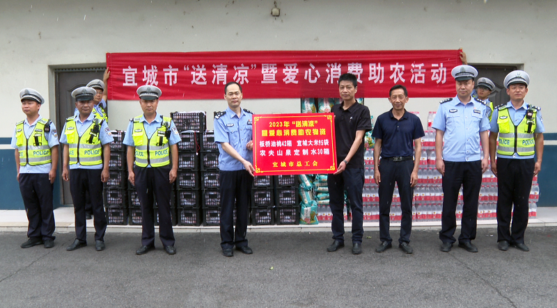 宜城市總工會(huì)有關(guān)負(fù)責(zé)人一行先后到市環(huán)衛(wèi)局和交警大隊(duì)等地,為一線勞動(dòng)者和民輔警送去礦泉水、米、水果等物資,并囑咐大家要?jiǎng)谝萁Y(jié)合,在做好本職工作的同時(shí),做好自身防暑降溫。