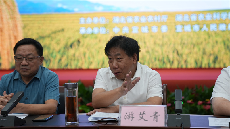 省農(nóng)業(yè)科學(xué)院院長(zhǎng)游艾青分析了種業(yè)發(fā)展面臨的機(jī)遇和存在的問(wèn)題,就下一步湖北種業(yè)科研發(fā)展的方向提出要求。