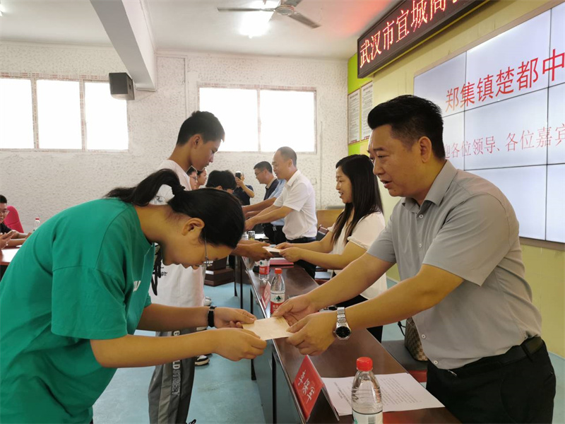 蔣代剛在致辭中表示,武漢市宜城商會的優(yōu)秀企業(yè)家在百忙之中回到家鄉(xiāng)、回饋家鄉(xiāng),奉獻(xiàn)愛心、捐資助學(xué),充分彰顯了他們成功不忘回饋家鄉(xiāng)的質(zhì)樸鄉(xiāng)情和成功不忘回報社會的責(zé)任擔(dān)當(dāng)。希望受到資助的同學(xué)把黨委、政府和愛心人士的關(guān)心轉(zhuǎn)化為向上向善的動力,不斷增強(qiáng)愛國意識和愛國情懷,牢固樹立正確的世界觀、人生觀、價值觀,自強(qiáng)不息、發(fā)奮圖強(qiáng)。同時,宜城將以最大的誠意、最好的政策、最優(yōu)的服務(wù),為企業(yè)家在宜城投資興業(yè)、創(chuàng)新創(chuàng)造提供廣闊舞臺。希望企業(yè)家們多回家鄉(xiāng)走一走、看一看,繼續(xù)看好宜城、關(guān)注宜城、投資宜城。
