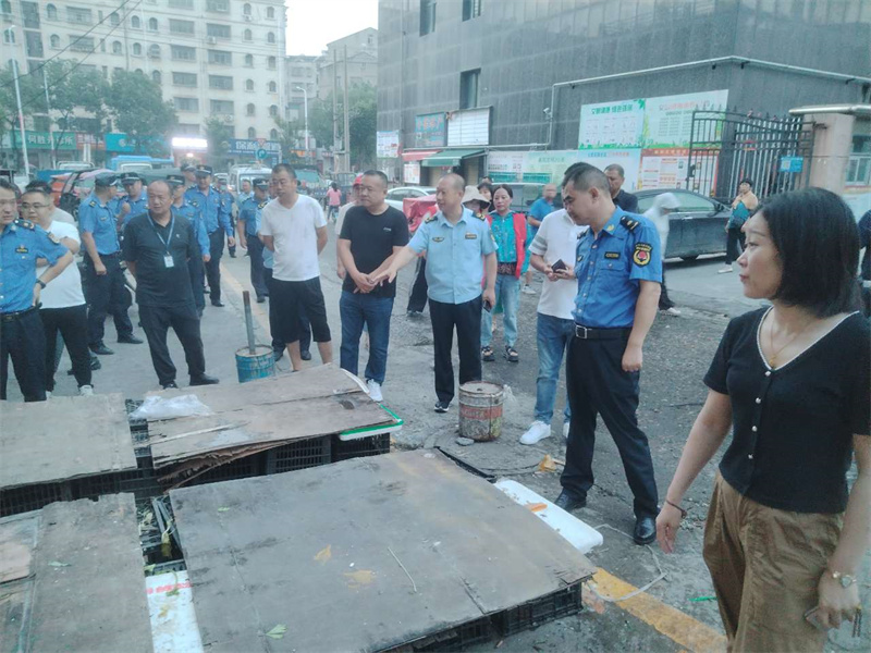 在執(zhí)法現(xiàn)場(chǎng),工作專(zhuān)班對(duì)市場(chǎng)內(nèi)商戶(hù)證照公示、衛(wèi)生保潔制度落實(shí)、有無(wú)過(guò)期、變質(zhì)、偽劣食品等情況,以及亂搭亂建、亂堆亂擺、亂扔亂倒等“臟亂差”問(wèn)題,馬路市場(chǎng)、占道經(jīng)營(yíng)行為開(kāi)展集中整治,并對(duì)整治行動(dòng)中發(fā)現(xiàn)的問(wèn)題,責(zé)令限期整改。