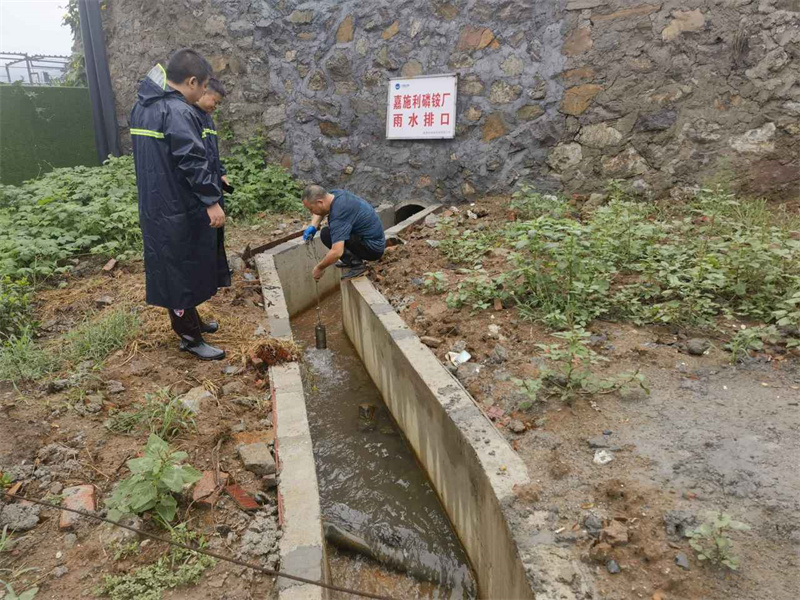 王榮輝報道:9月11日清晨,宜城市突降暴雨,為防止不法企業(yè)"借雨排污",消除生態(tài)環(huán)境風(fēng)險隱患,襄陽市生態(tài)環(huán)境保護(hù)局宜城分局組織執(zhí)法大隊和環(huán)境監(jiān)測站工作人員冒雨對企業(yè)雨水排口、入蠻河溝渠開展突擊檢查。