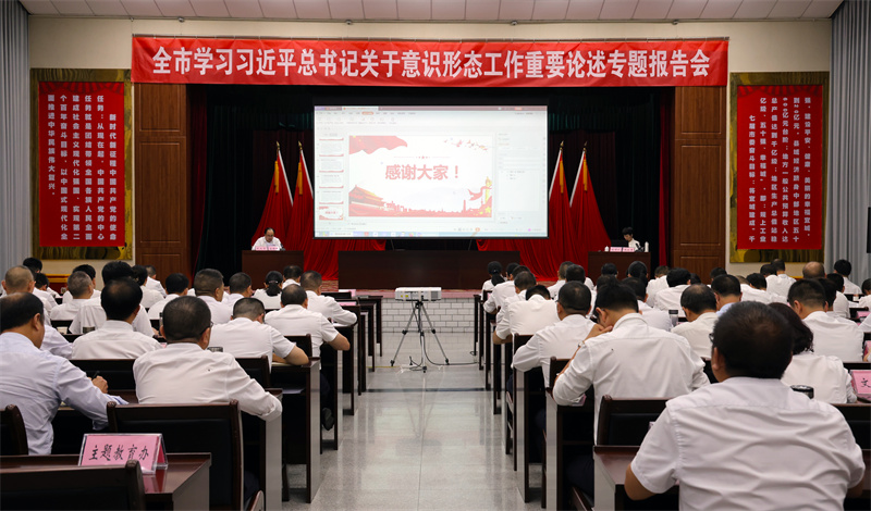本網(wǎng)訊記者李勤 周波報(bào)道:9月15日,全市學(xué)習(xí)習(xí)近平總書記關(guān)于意識(shí)形態(tài)工作重要論述專題報(bào)告會(huì)在財(cái)培中心會(huì)議室召開,深入學(xué)習(xí)領(lǐng)會(huì)習(xí)近平總書記關(guān)于意識(shí)形態(tài)工作的重要論述,進(jìn)一步增強(qiáng)廣大黨員干部底線思維,切實(shí)保障意識(shí)形態(tài)領(lǐng)域安全穩(wěn)定。武義泉、肖平、陳進(jìn)雷等市領(lǐng)導(dǎo)參加了學(xué)習(xí)。