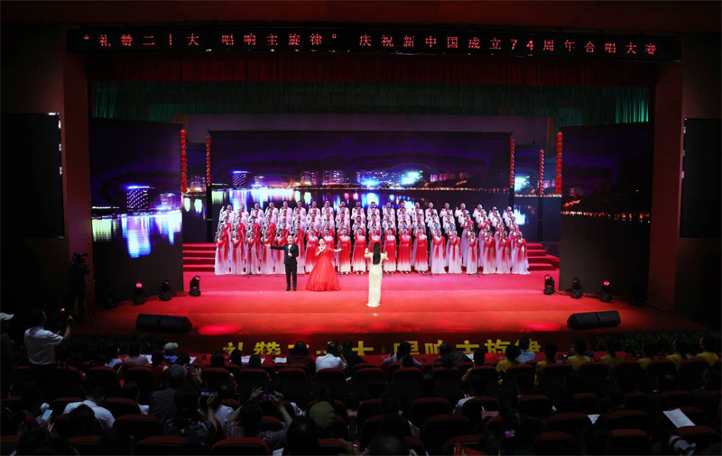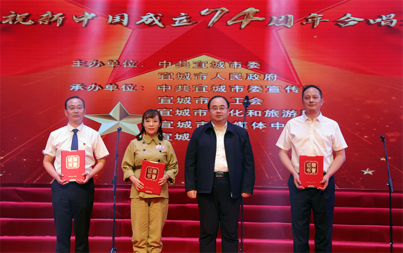 本網(wǎng)訊記者李勤 周波報(bào)道:花好月圓迎中秋,楚都飛歌頌國(guó)慶。9月28日,由宜城市委、市政府主辦,市委宣傳部、市總工會(huì)、市文化和旅游局、市融媒體中心、市文聯(lián)承辦的“禮贊二十大唱響主旋律”慶祝新中國(guó)成立74周年合唱大賽決賽在楚都文化中心舉行。武義泉、肖平、陳進(jìn)雷、李源等市“四大家”領(lǐng)導(dǎo)觀(guān)看了大賽,并為獲獎(jiǎng)合唱團(tuán)頒獎(jiǎng)。