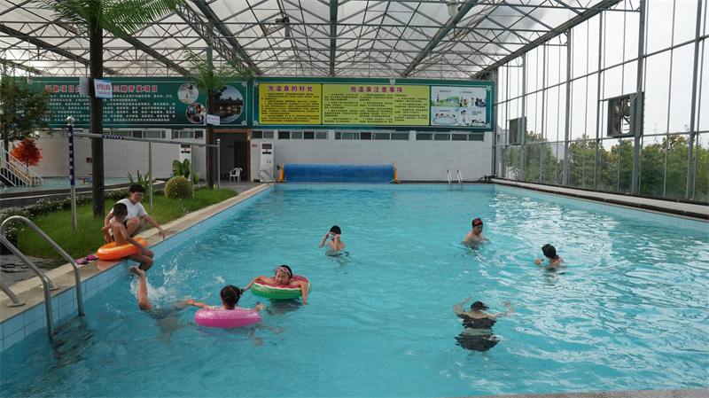 9月29日,在流水鎮(zhèn)落花潭溫泉泳池,記者看到,許多市民在這里游泳,孩子們在這里打水仗玩耍,歡笑聲不斷。