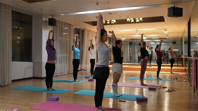 在市區(qū)的康橋健身會所內,許多瑜伽愛好者聚集在一起,在教練的帶領下,整齊劃一的做著各種動作,在一呼一吸,一張一弛中盡情享受這瑜伽帶來的放松和樂趣。