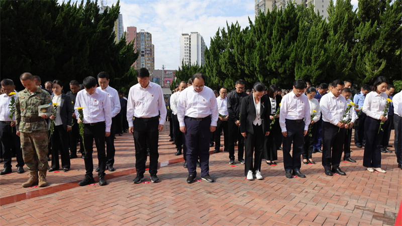 本網(wǎng)訊記者鄔玲玲 李勤報(bào)道:鮮花獻(xiàn)英烈,哀思祭忠魂。今年9月30日是我國(guó)第十個(gè)“烈士紀(jì)念日”,為傳承紅色基因,弘揚(yáng)愛(ài)國(guó)主義精神,9月30日上午,宜城市委書(shū)記武義泉,市委副書(shū)記、市長(zhǎng)肖平,市委副書(shū)記、政法委書(shū)記李曙東,市人大常委會(huì)主任陳進(jìn)雷,市政協(xié)主席李源等市“四大家”領(lǐng)導(dǎo)和黨政軍民代表一起,在烈士陵園舉行向烈士敬獻(xiàn)花籃儀式,緬懷先烈,祭奠忠魂。