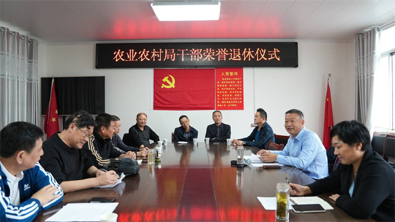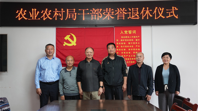 隨后,農(nóng)業(yè)農(nóng)村局黨組成員和老干部們一起合影留念,定格光榮退休時刻。