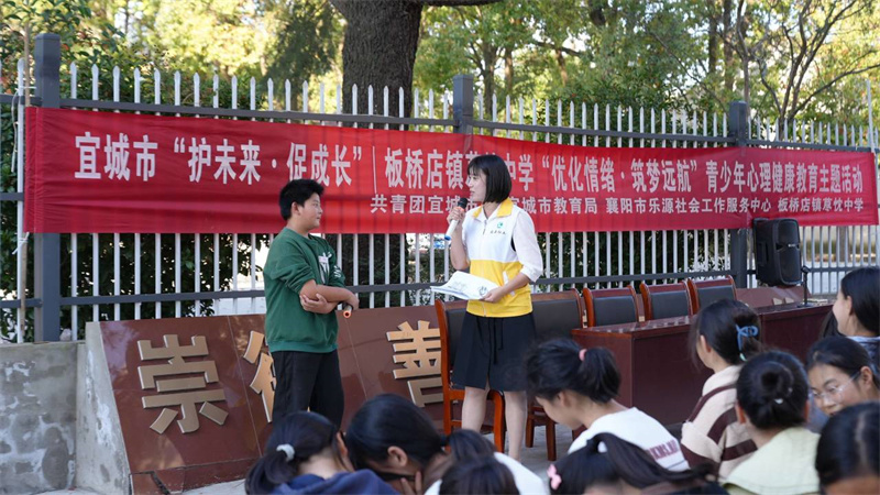 本網(wǎng)訊記者劉毅 鄭潘報(bào)道:10月31日,由共青團(tuán)宜城市委和市教育局聯(lián)合舉辦的"優(yōu)化情緒·筑夢(mèng)遠(yuǎn)航"青少年心理健康教育活動(dòng),走進(jìn)板橋店鎮(zhèn)藎忱中學(xué)。