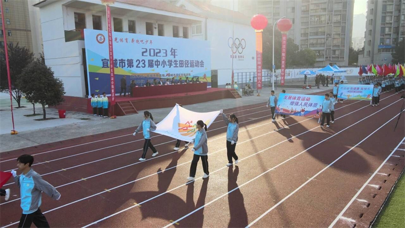 本網(wǎng)訊通訊員李曉飛 記者張尚東 陳飛報(bào)道:11月1日,宜城市第二十三屆中小學(xué)生田徑運(yùn)動(dòng)會(huì)在宋玉中學(xué)開(kāi)幕,全市共39支參賽隊(duì)伍469人將參加為期兩天的比賽。副市長(zhǎng)陳珊參加開(kāi)幕式。