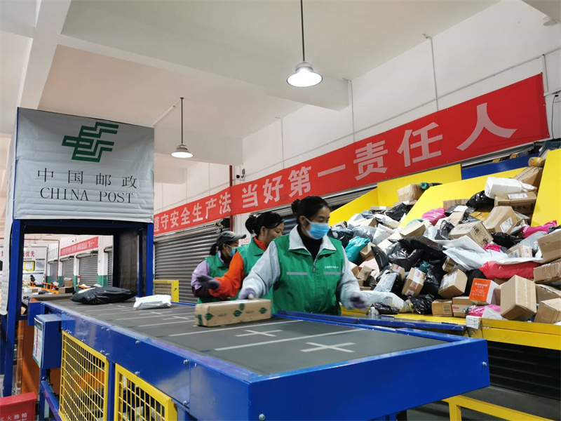 “雙十一期間,我們進口量一般在2萬件左右,出口量一般在6萬件左右,總體進出口量在8萬件左右,高峰期能達到10萬件。出口的產(chǎn)品主要就是紅薯、大米、香菇、木耳等農(nóng)副產(chǎn)品,占比能達到60%!币顺鞘朽]政分公司運管部經(jīng)理吳大俊介紹道。