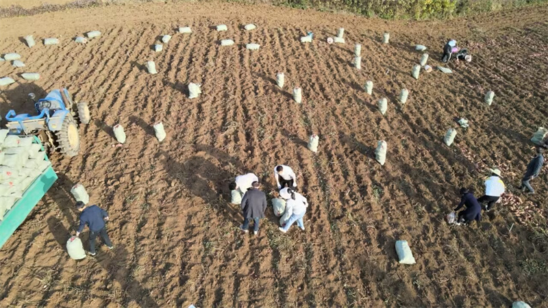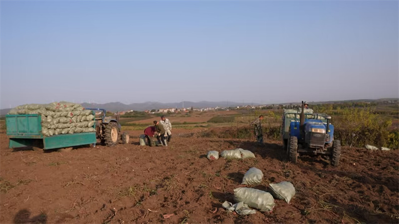 在示范基地,伴隨著機器的陣陣轟鳴,許多紅薯破土而出。工人們忙著拾撿裝袋,技術(shù)人員則一邊稱重,一邊查看數(shù)據(jù),評估紅薯長勢。